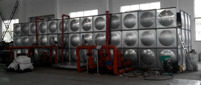 不銹鋼水箱,是由BDF無焊接板塊螺絲拼裝組成,徹底解決了傳統焊接水箱因焊接導致的貧烙的問題。外部采用熱浸鍍鋅鋼板,內部與水接觸部分采用食品級不銹鋼SUS304/2B機械復合模壓成型。而且現在我公司經過自主研發,發明了自動清洗裝置,實現了自動智能清洗的功能,解決了人工清洗的煩惱。