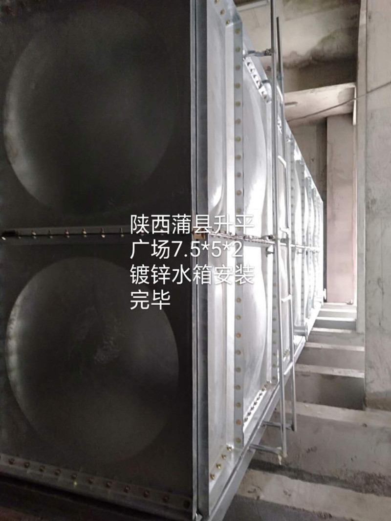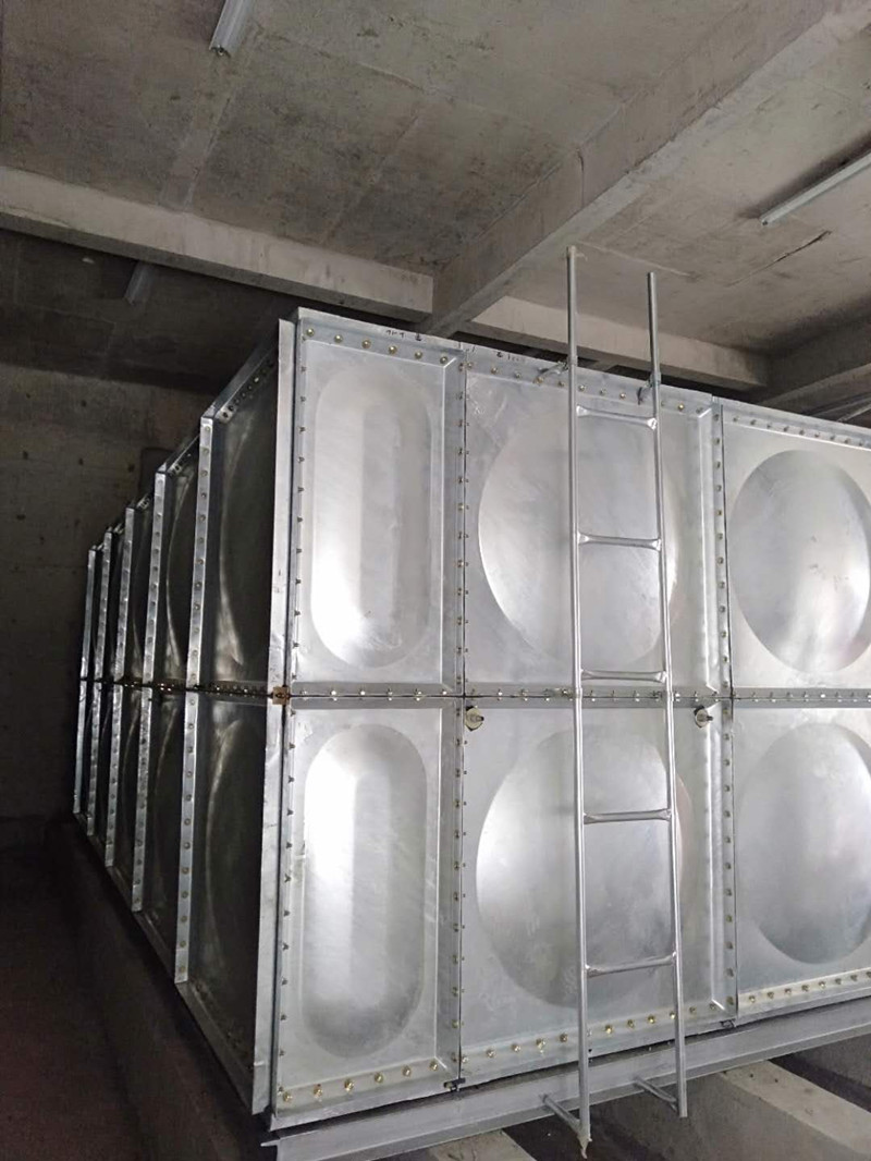 騰翔鍍鋅水箱主要采用優(yōu)質的Q235鋼板沖壓而成,形成1000×1000、1000×500、500×500等標準板塊后經(jīng)熱浸鍍鋅處理后形成鍍鋅水箱板。優(yōu)點是:全螺栓連接,現(xiàn)場進行組裝,組裝快捷方便,組裝時采用密封條密封,不易出現(xiàn)漏水及密封不嚴現(xiàn)象。水箱體內特殊性拉桿結構,使力學性能更合理,高度可達到5米。鍍鋅水箱對安裝現(xiàn)場無特殊要求,無需吊裝設備,容積可滿足用戶要求。