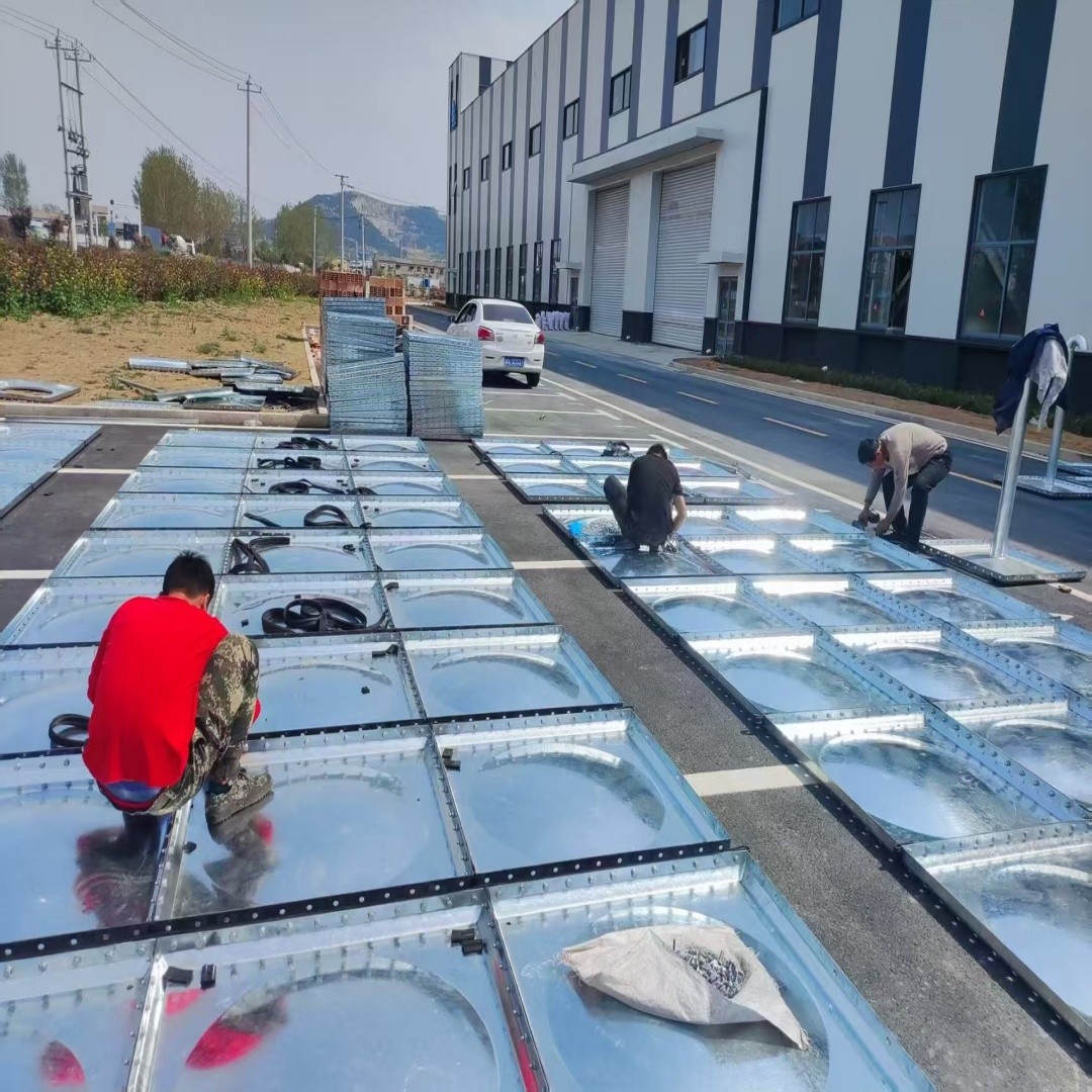 1、焊接底架——根據水箱板塊尺寸確定槽鋼的間距,首先將槽鋼固定,用水平尺 校對,其平整然后再整體緊固。